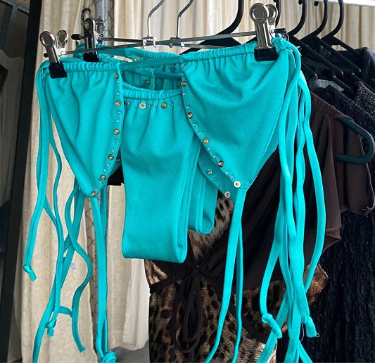 Aqua beaded bikini set