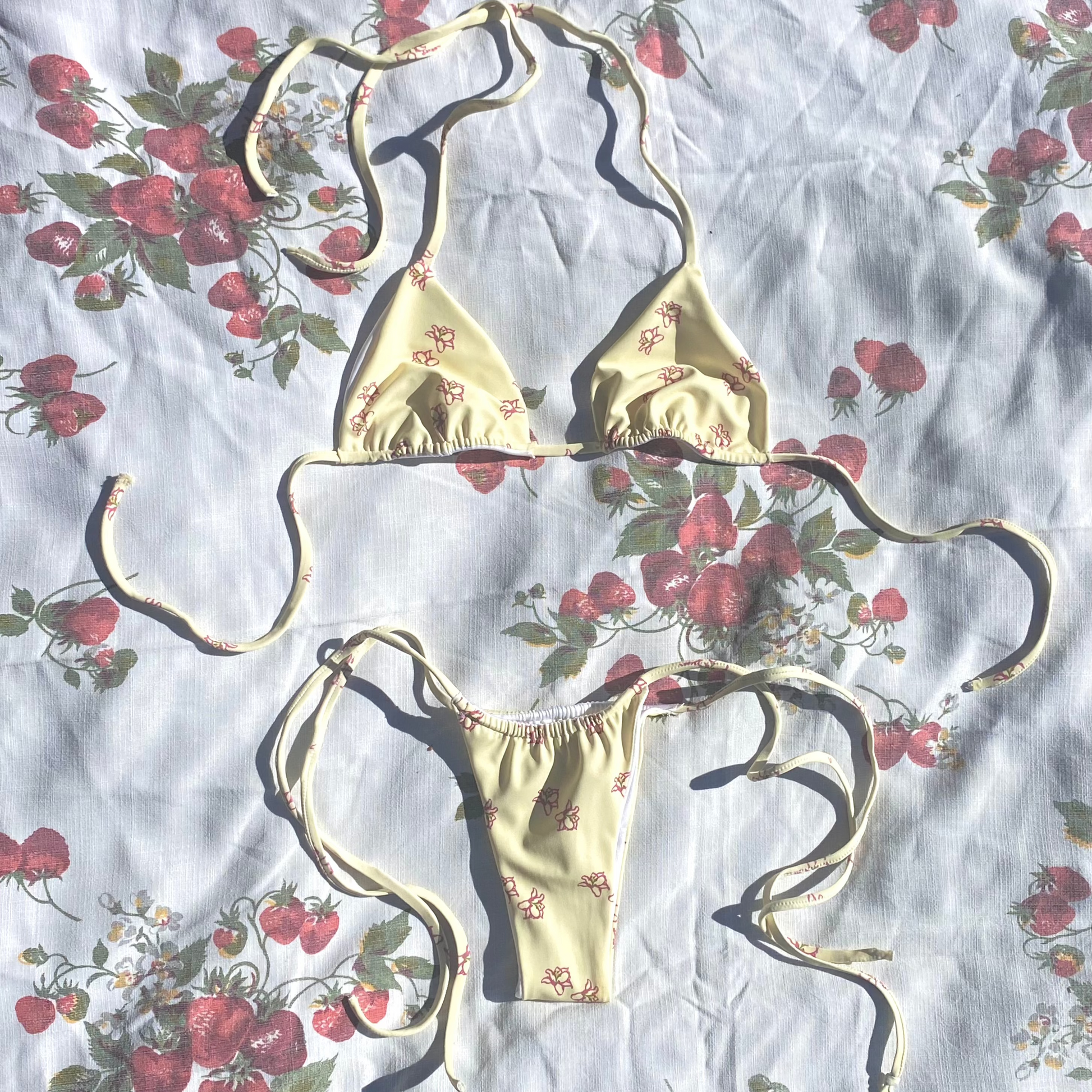 The butter cream bikini set includes a tie-side, adjustable bottom and an adjustable halter neck top. It has a smooth seamless lining, maximising comfort.