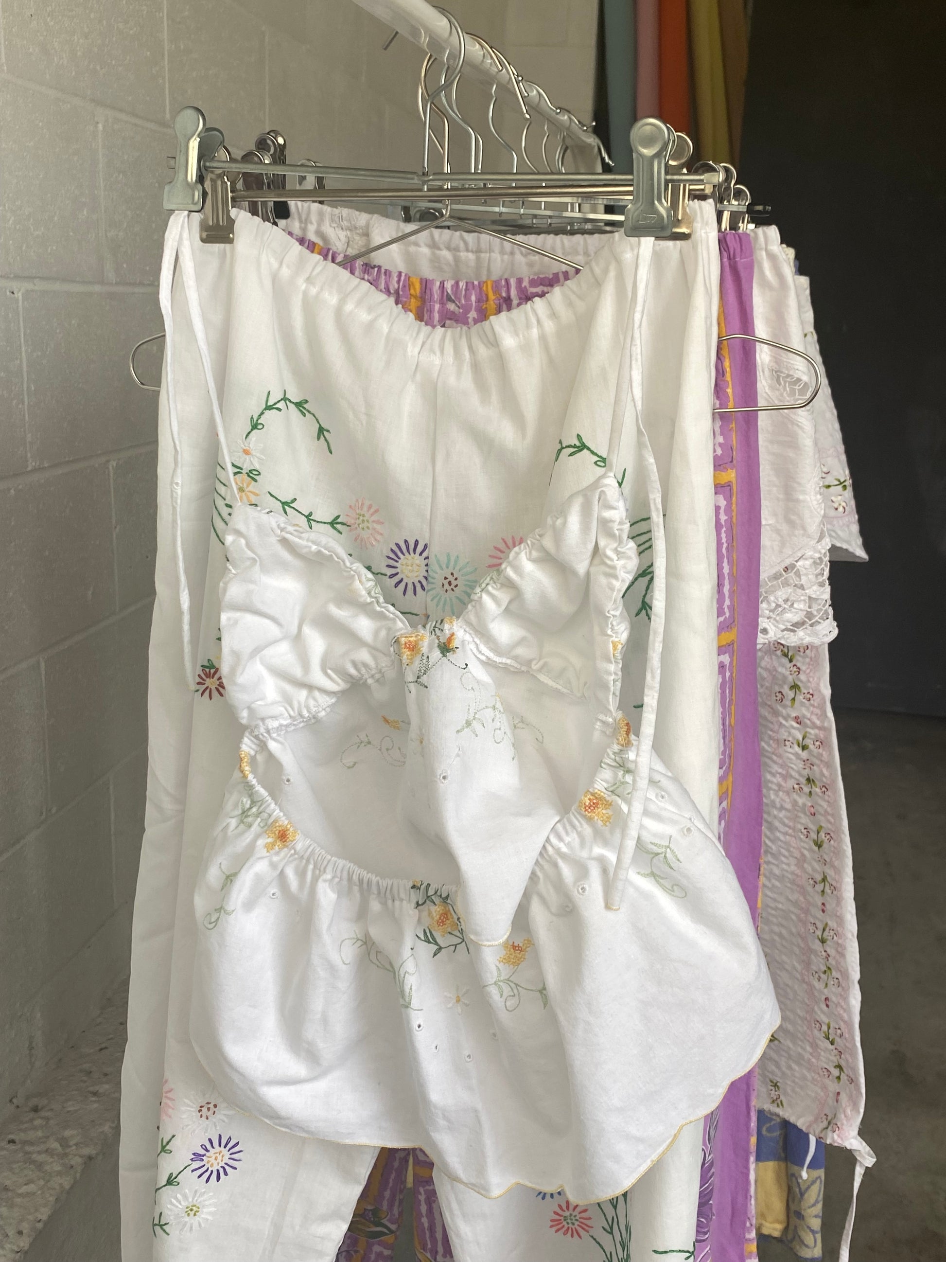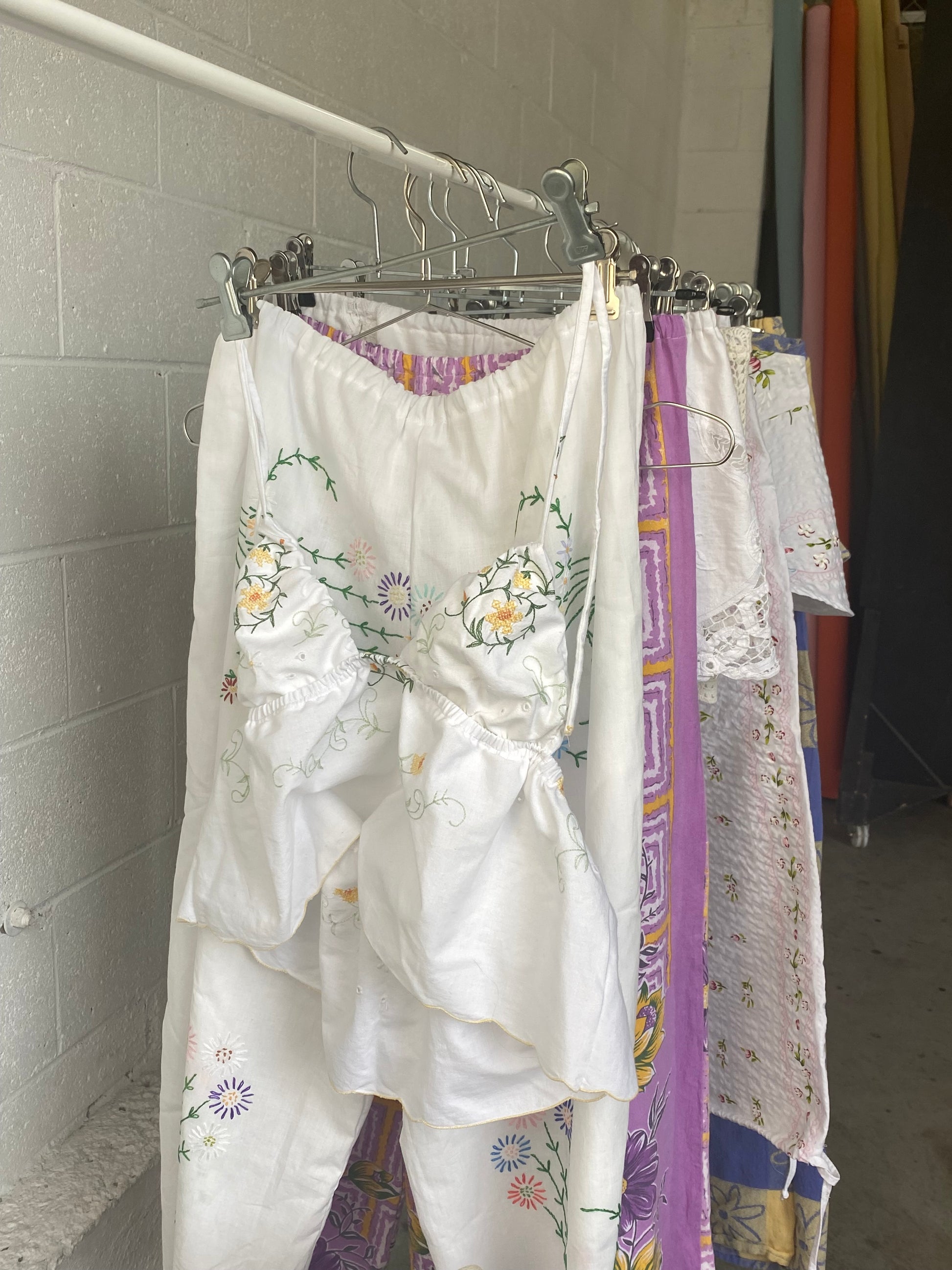 Halter neck top. Made from 100% cotton, hand embroidered vintage fabric. Features elastic around cups and under bust to keep top comfortable and in place. Cups are lined on the inside. Halter neck strap is adjustable. Top is are shown on a size 6, C cup. Could fit and A cup to C cup comfortably.